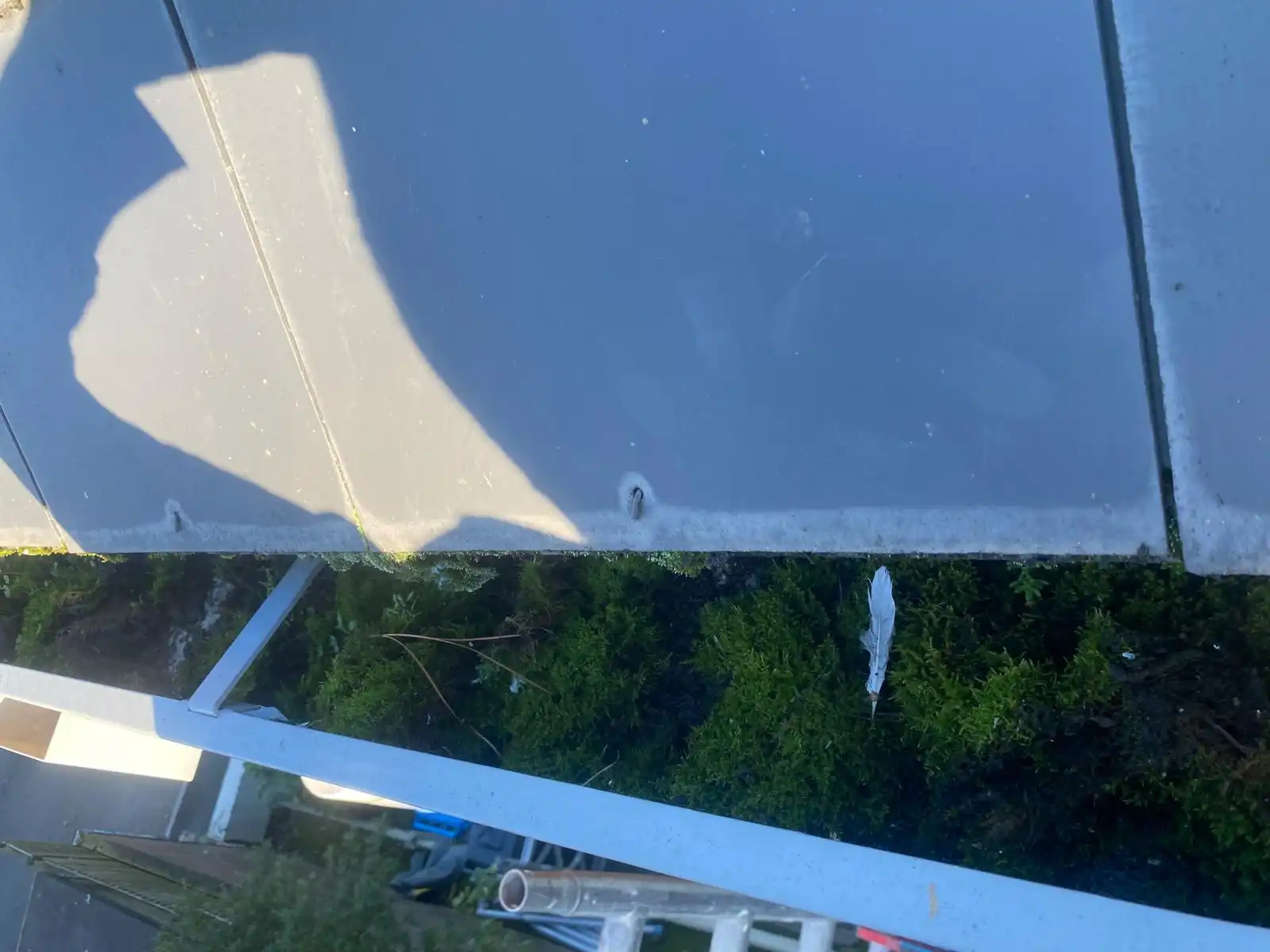Cleared the moss and debris blocking the gutters and downpipe.
