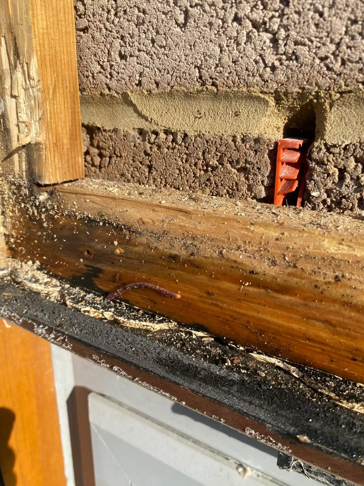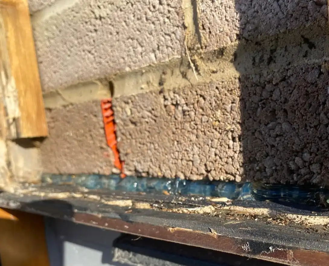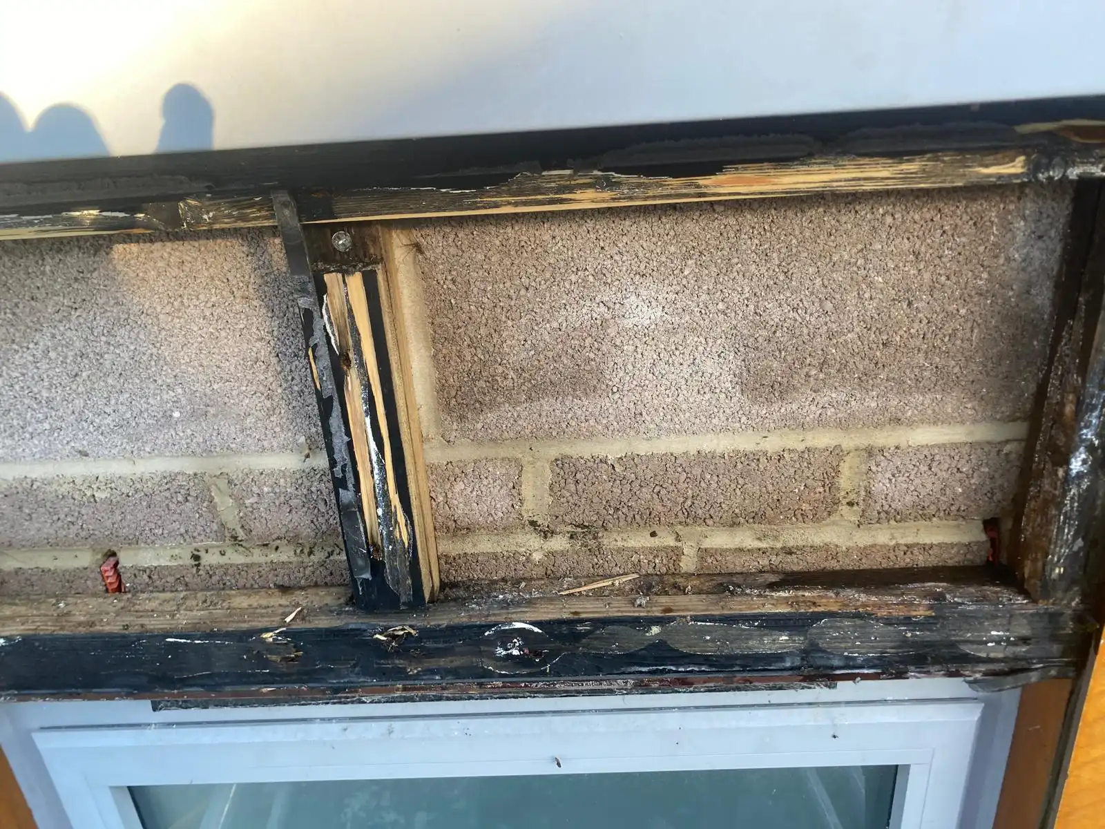 Blocked Weep Vents: Removing the cladding above the window revealed rotten timbers and a poorly installed substructure, which was blocking the weep vents designed to direct water away from the building.