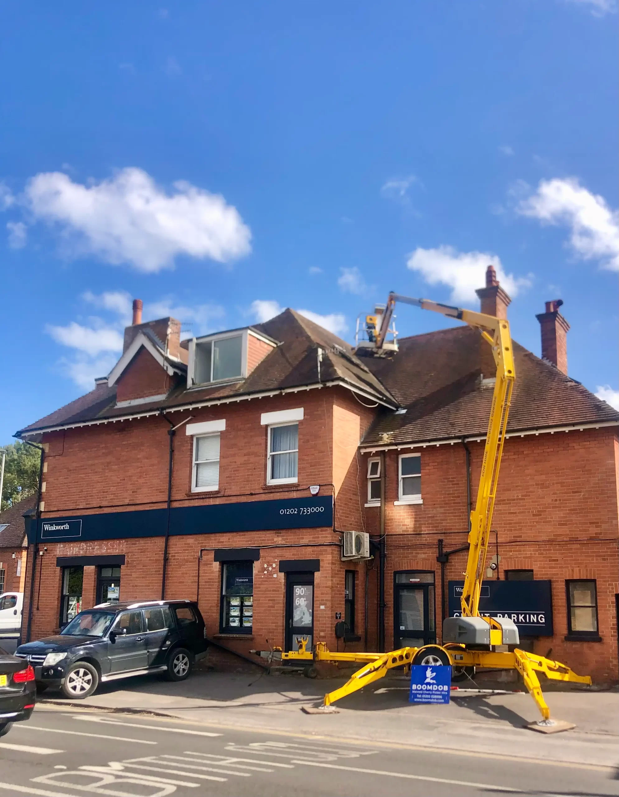 When loose roof tiles at Winkworth Estate Agents in Poole, Dorset began slipping and falling, urgent action was required to prevent further damage and ensure the safety of those nearby. The job couldn’t be handled with a ladder, and waiting for scaffolding wasn’t practical given the time-sensitive nature and the associated costs.